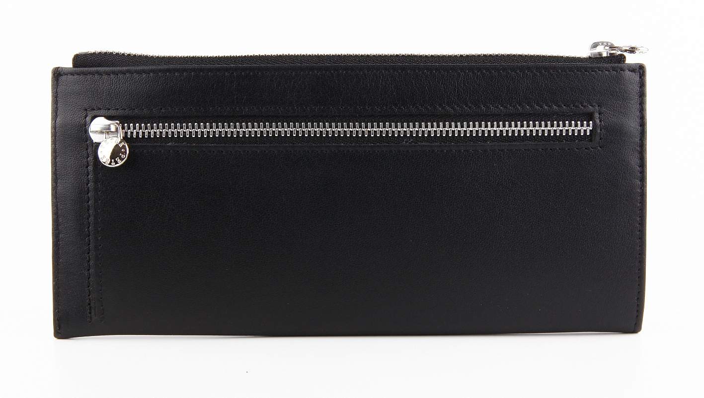 Женский элегантный кошелек Petek из натуральной кожи. Закрывается на молнию, внутри одно большое отделение, восемь карманов для пластиковых карт, дополнительное отделение для купюр. Снаружи на задней стенке монетница на молнии.