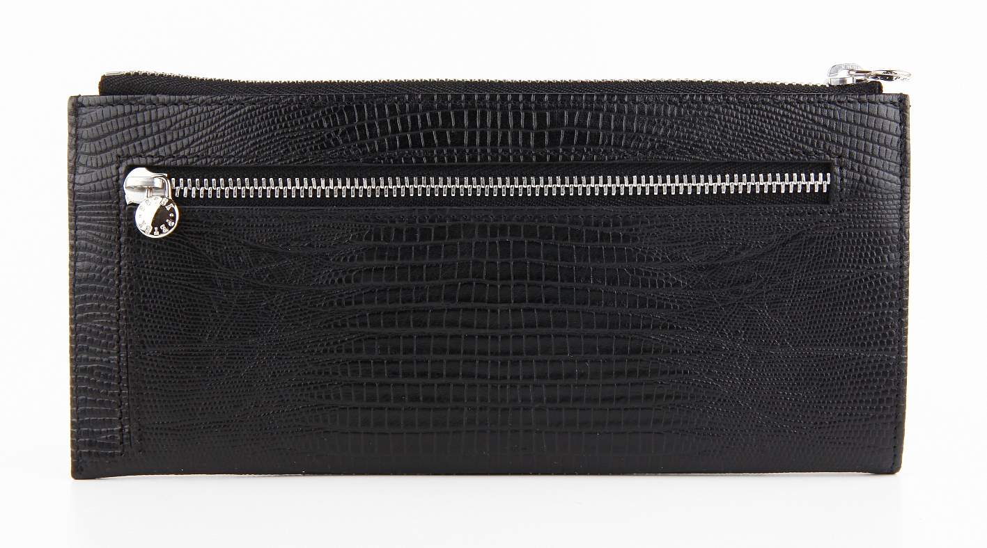 Женский элегантный кошелек Petek из натуральной кожи. Закрывается на молнию, внутри одно большое отделение, восемь карманов для пластиковых карт, дополнительное отделение для купюр. Снаружи на задней стенке монетница на молнии.