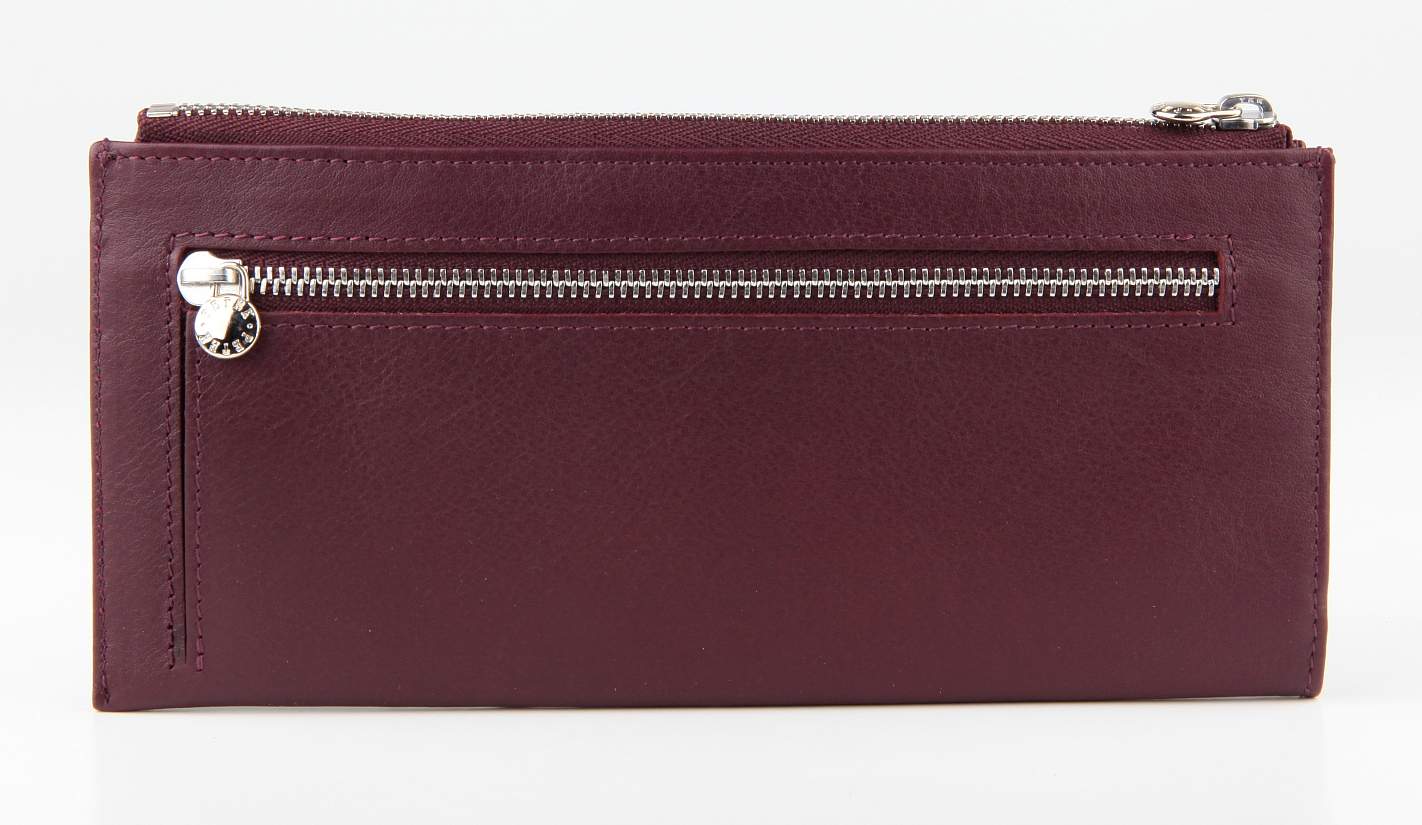 Женский элегантный кошелек Petek из натуральной кожи. Закрывается на молнию, внутри одно большое отделение, восемь карманов для пластиковых карт, дополнительное отделение для купюр. Снаружи на задней стенке монетница на молнии.