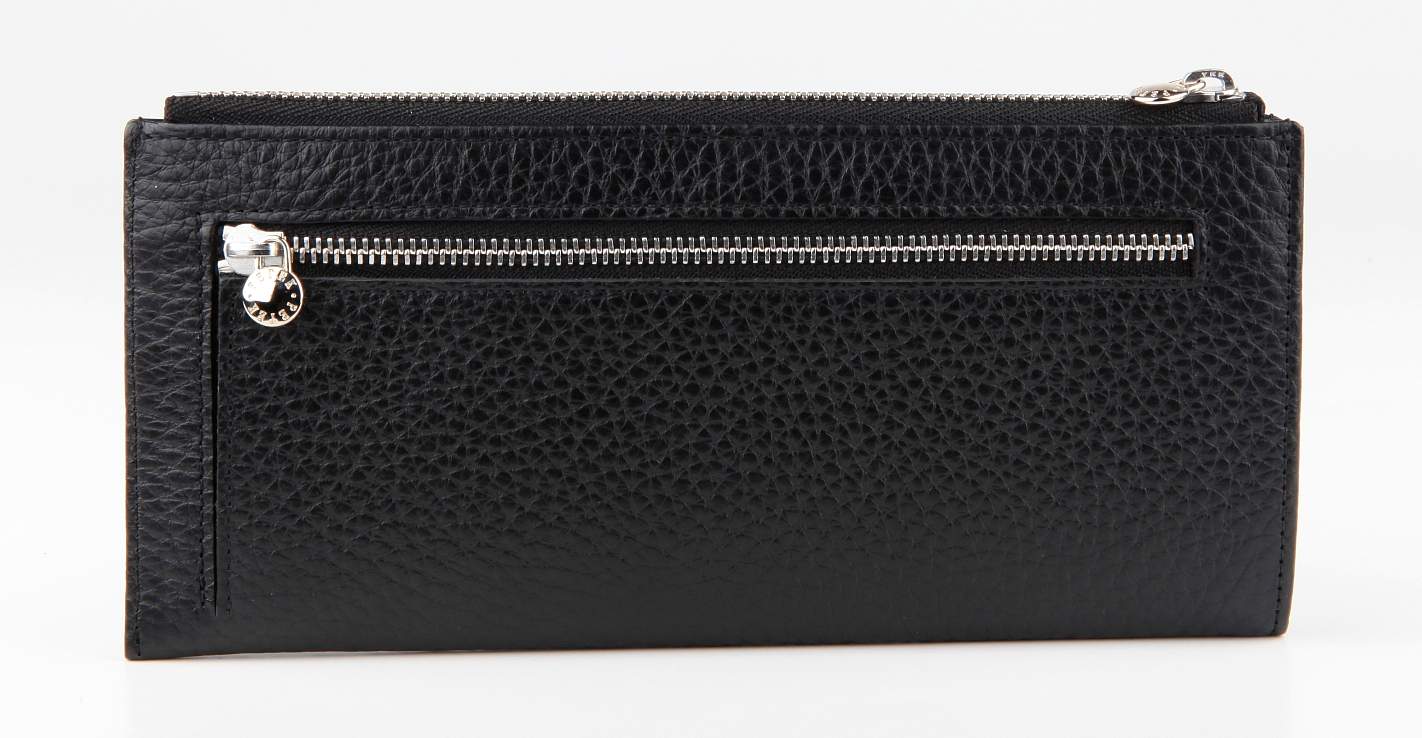 Женский элегантный кошелек Petek из натуральной кожи. Закрывается на молнию, внутри одно большое отделение, восемь карманов для пластиковых карт, дополнительное отделение для купюр. Снаружи на задней стенке монетница на молнии.