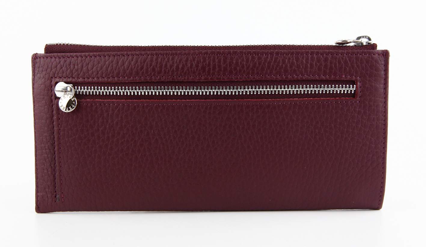 Женский элегантный кошелек Petek из натуральной кожи. Закрывается на молнию, внутри одно большое отделение, восемь карманов для пластиковых карт, дополнительное отделение для купюр. Снаружи на задней стенке монетница на молнии.