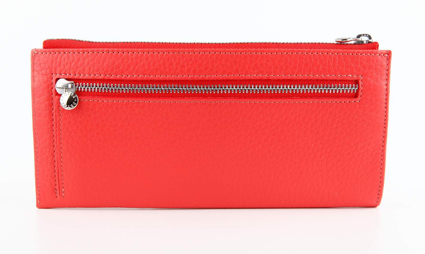 Женский элегантный кошелек Petek из натуральной кожи. Закрывается на молнию, внутри одно большое отделение, восемь карманов для пластиковых карт, дополнительное отделение для купюр. Снаружи на задней стенке монетница на молнии.