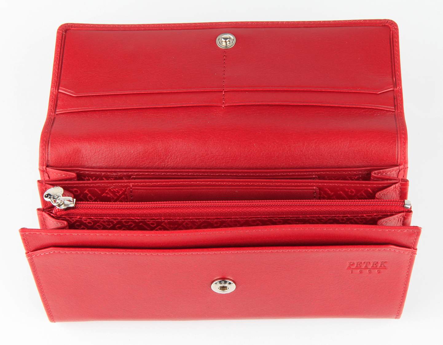 Кошелек Petek выполнен из качественной натуральной кожи. Отделение для монет находится снаружи и закрывается на молнию. Имеется один открытый кармашек на внешней стороне кошелька. Внутри расположены три отделения для банкнот, одно отделение на молнии для монет и два открытых кармашка для мелких предметов. Всего имеется двенадцать отделений для кредитных карт.
