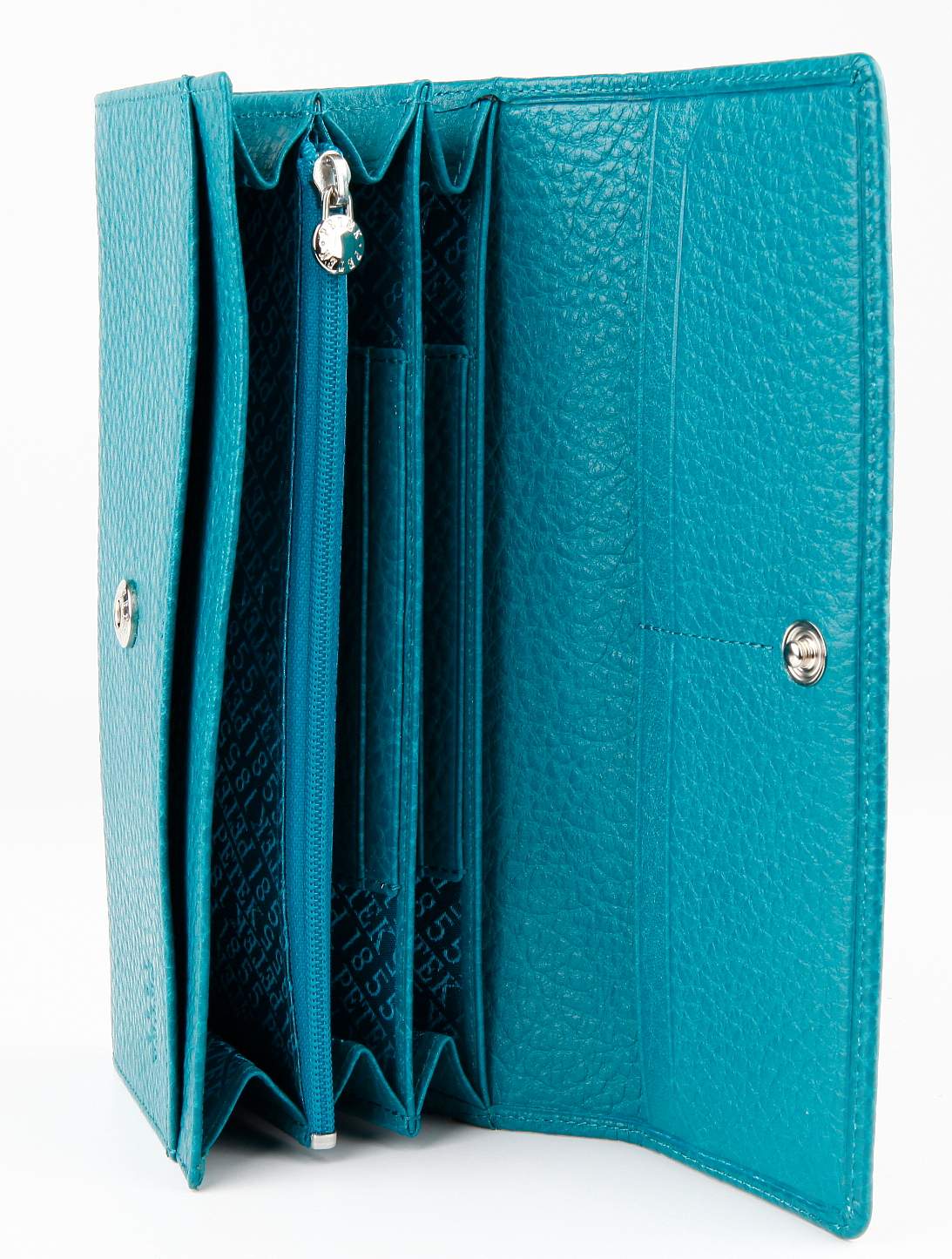 Кошелек Petek выполнен из качественной натуральной кожи. Отделение для монет находится снаружи и закрывается на молнию. Имеется один открытый кармашек на внешней стороне кошелька. Внутри расположены три отделения для банкнот, одно отделение на молнии для монет и два открытых кармашка для мелких предметов. Всего имеется двенадцать отделений для кредитных карт.