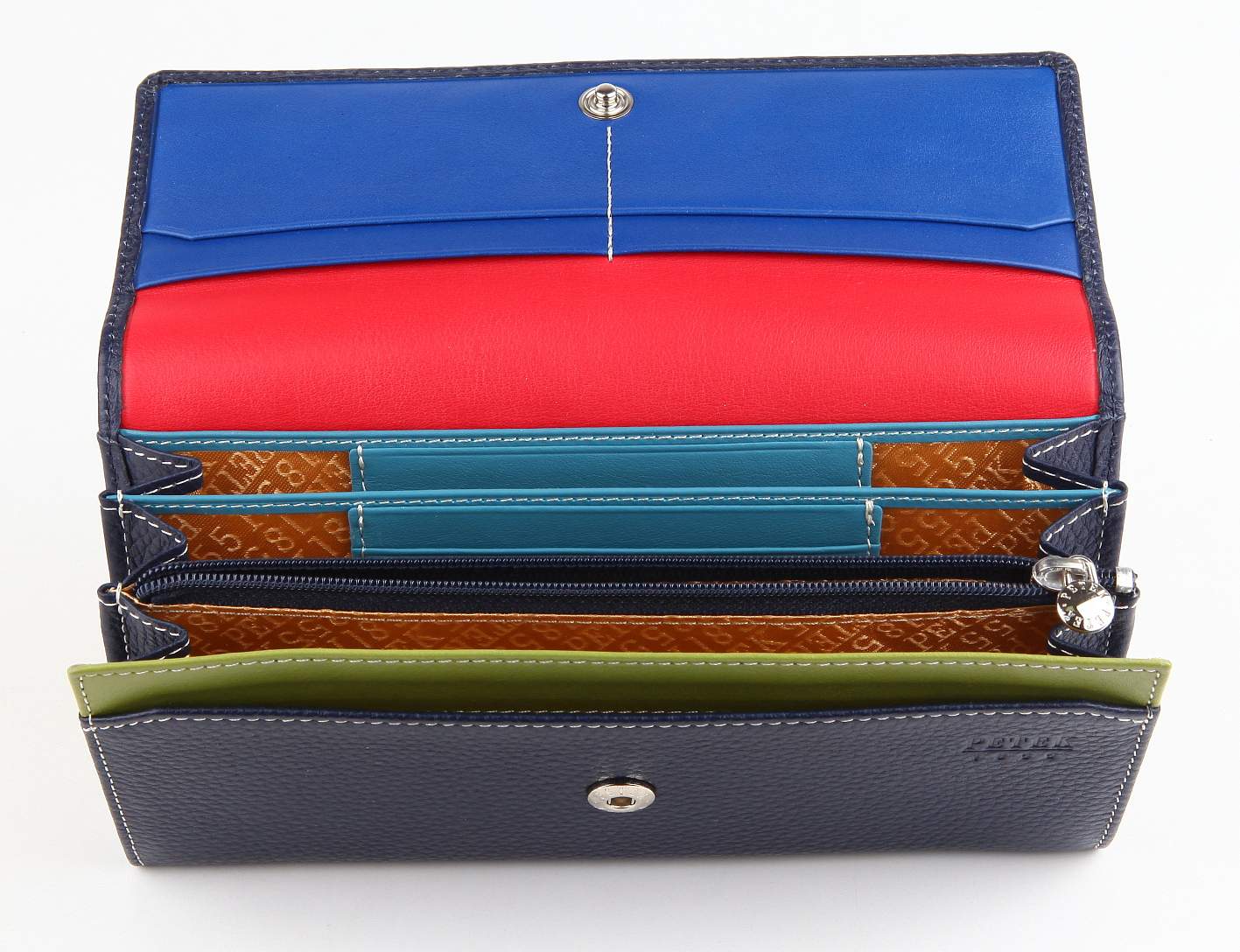 Кошелек Petek выполнен из качественной натуральной кожи. Отделение для монет находится снаружи и закрывается на молнию. Имеется один открытый кармашек на внешней стороне кошелька. Внутри расположены три отделения для банкнот, одно отделение на молнии для монет и два открытых кармашка для мелких предметов. Всего имеется двенадцать отделений для кредитных карт.
