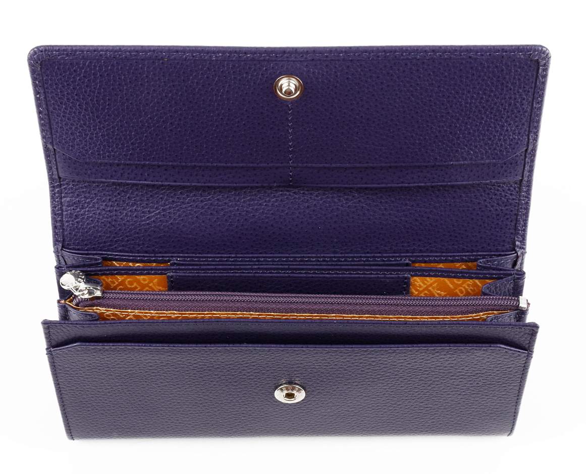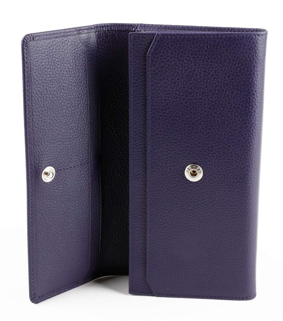 Отделение для мелочи снаружи на молнии. Один открытый кармашек снаружи кошелька. Три отделения для купюр, 1 отделение на молнии, 2 открытых кармашка, 12 отделения для кредитных карт.