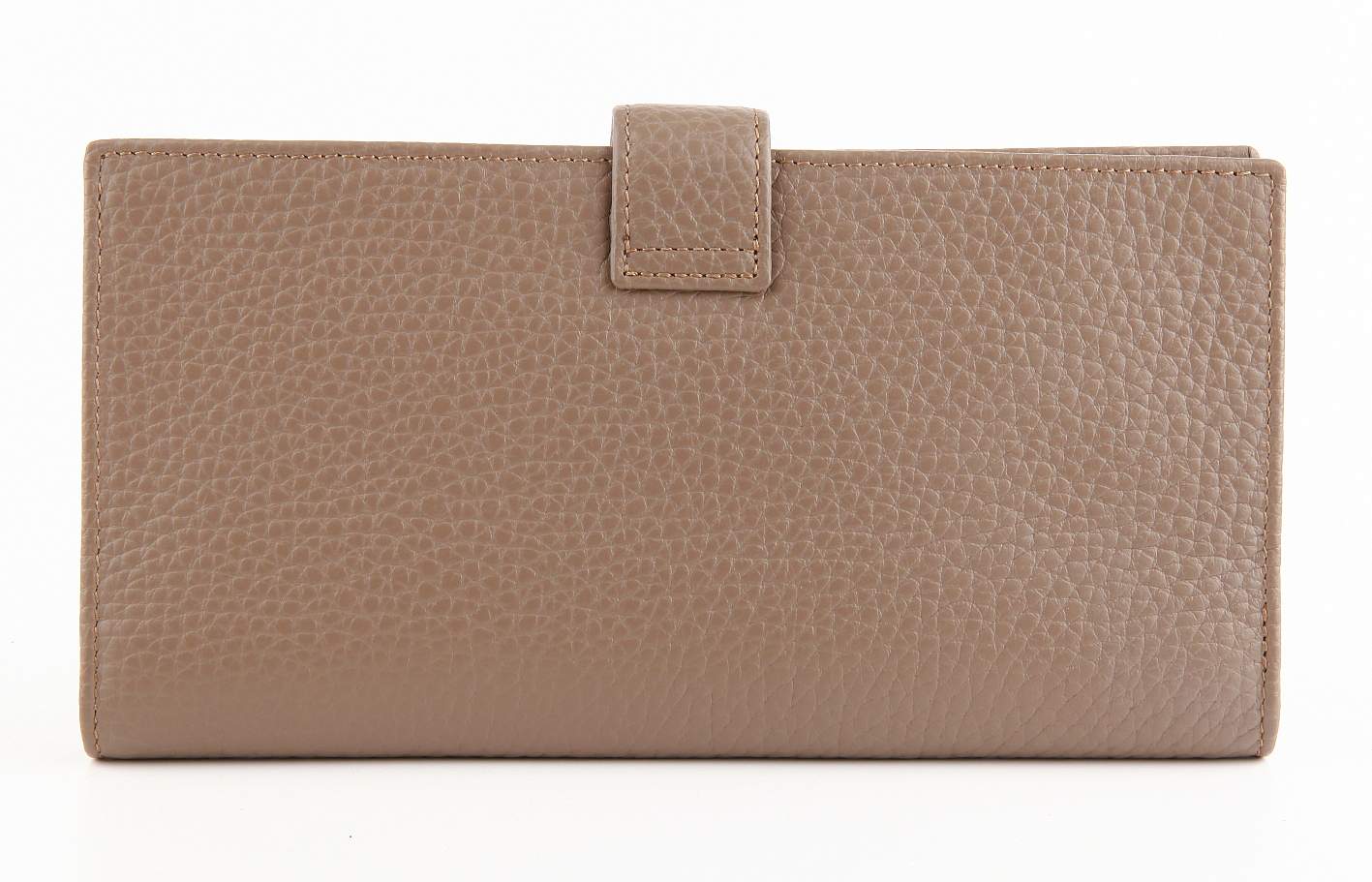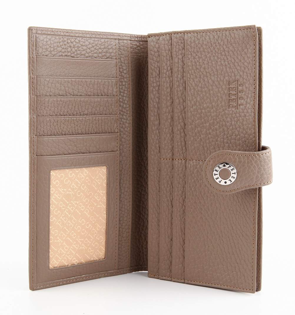 Утонченное портмоне из натуральной кожи. Внутри один просторный блок для купюр. Монетница в этой модели отсутствует. Большое количество кармашков для пластиковых карт, карман с сеточным окошком и два длинных многофункциональных отделения.