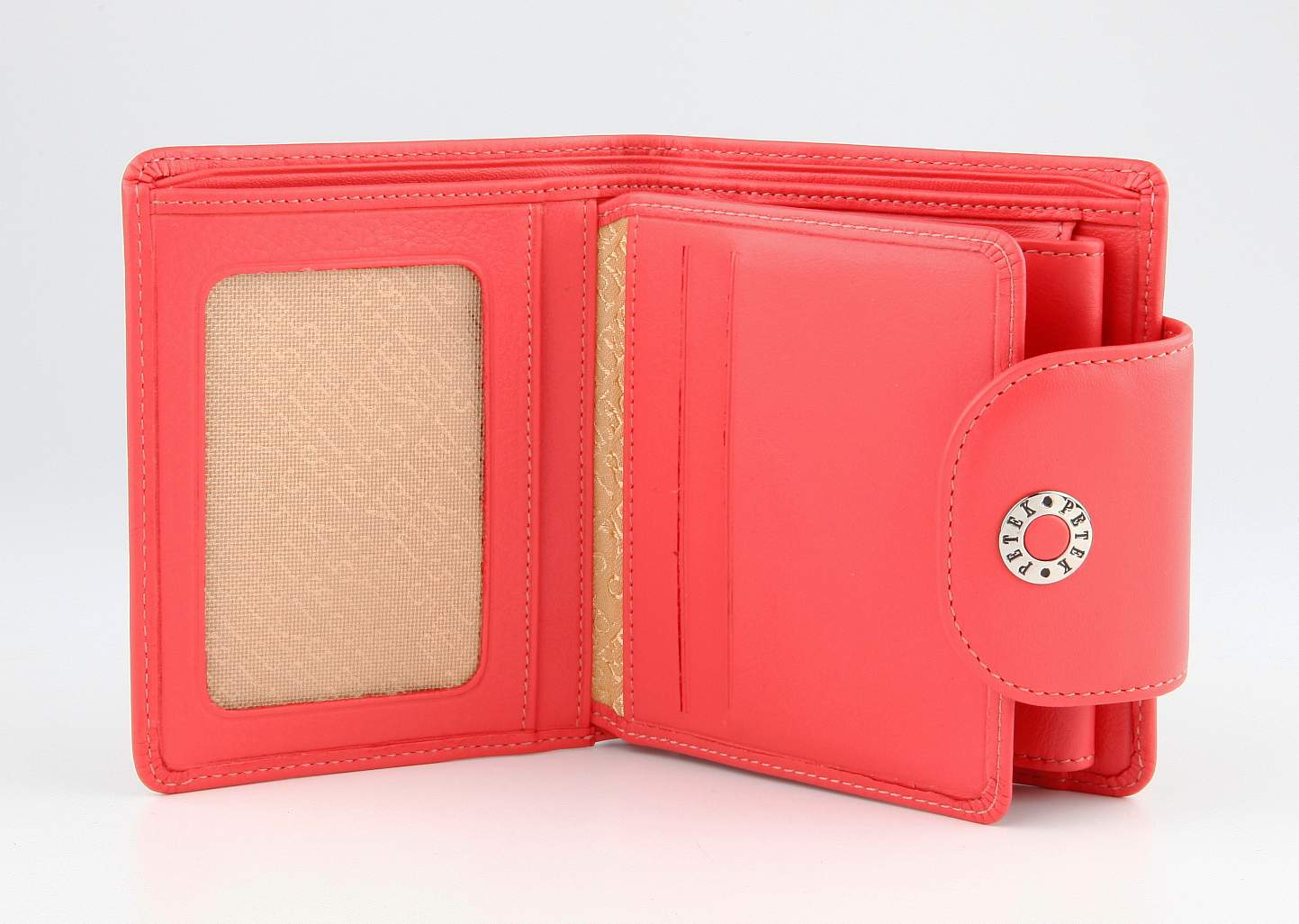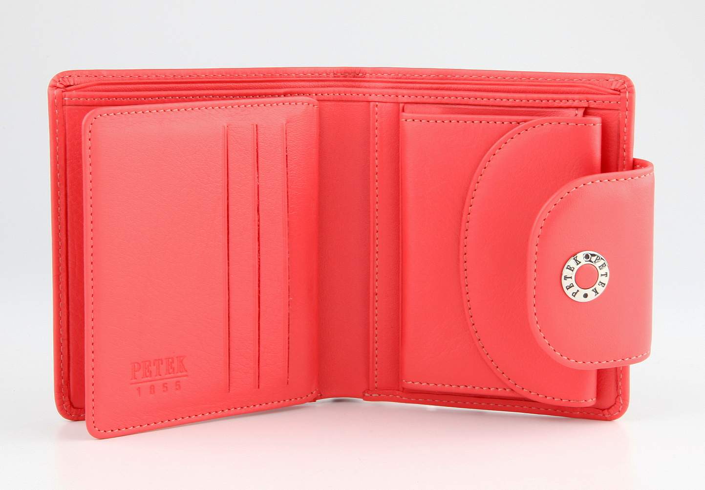 Портмоне женское PETEK из натуральной кожи. 2 отделения для купюр, 6 отделений для кредиток, 4 кармашка, отделение для мелочи внутри на кнопке.