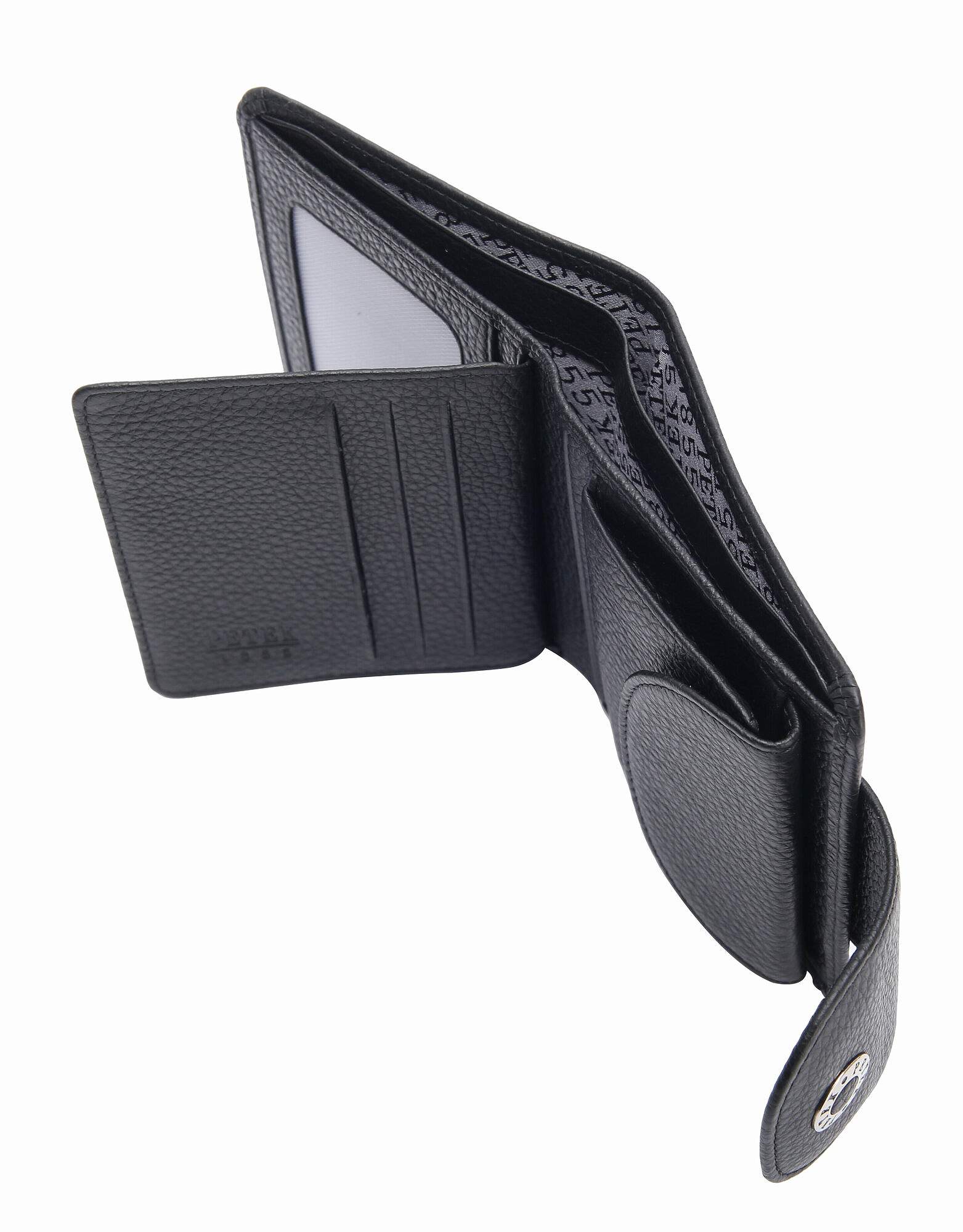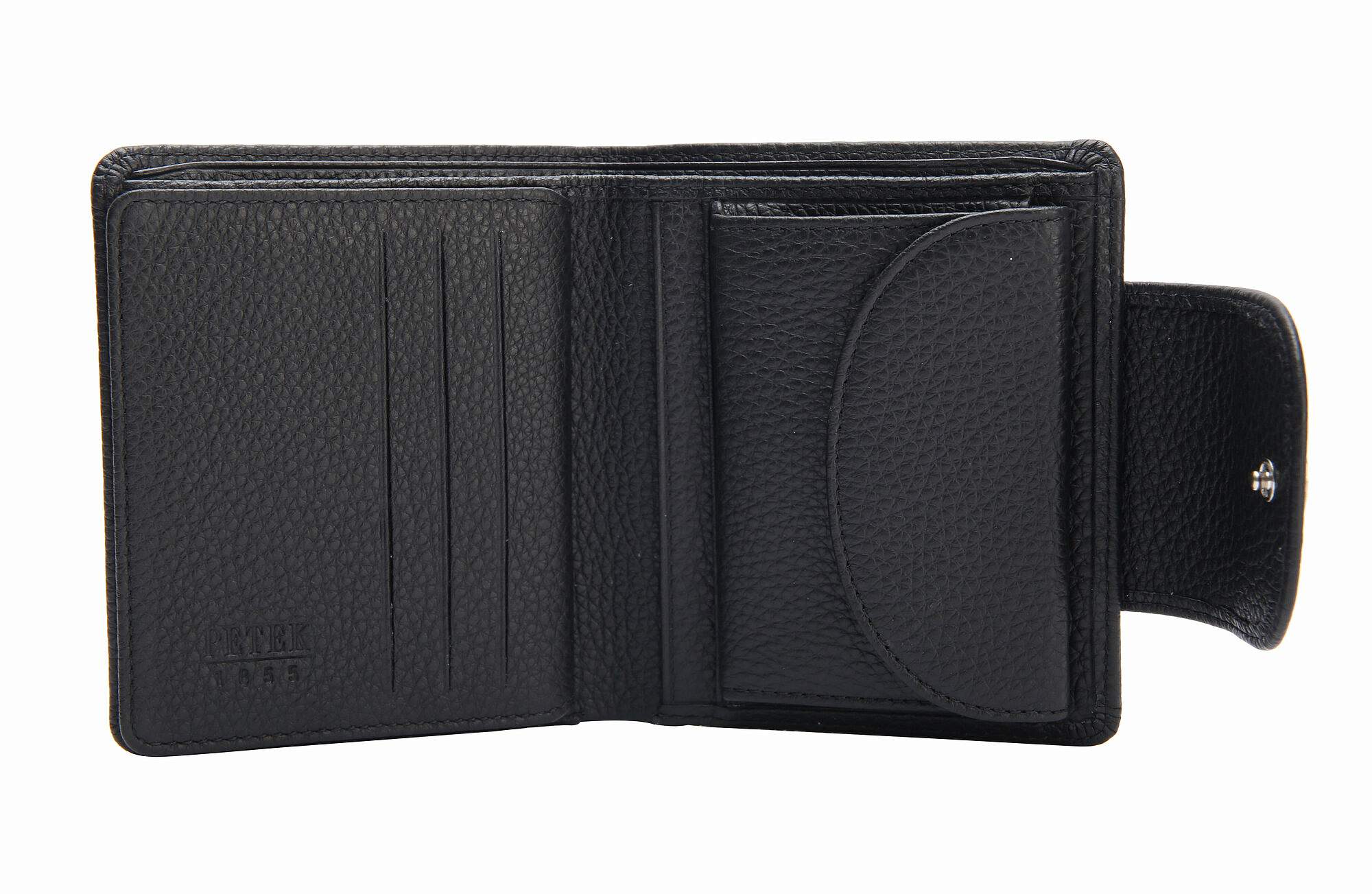 Кошелек Petek выполнен из высококачественной натуральной кожи. В кошельке есть два основных отделения для банкнот, шесть дополнительных отделений для кредитных карт, одно отделение для монет справа внутри на кнопке, а также прозрачный карман для водительского удостоверения или фотографий. Внутри кошелька также имеются четыре отдельных кармана для хранения мелких предметов, что делает этот кошелек максимально функциональным и удобным для использования.