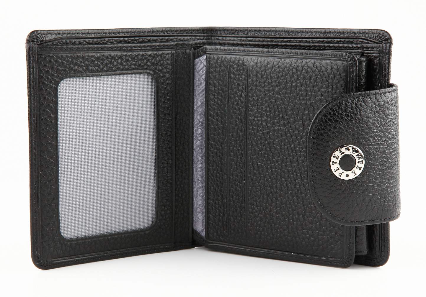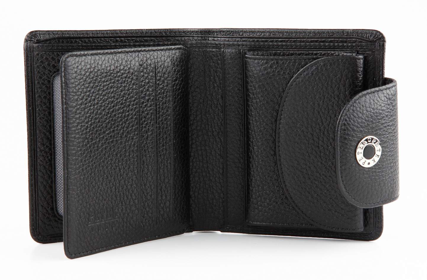 Портмоне женское PETEK из натуральной кожи. 2 отделения для купюр, 6 отделений для кредиток, 4 кармашка, отделение для мелочи внутри на кнопке.