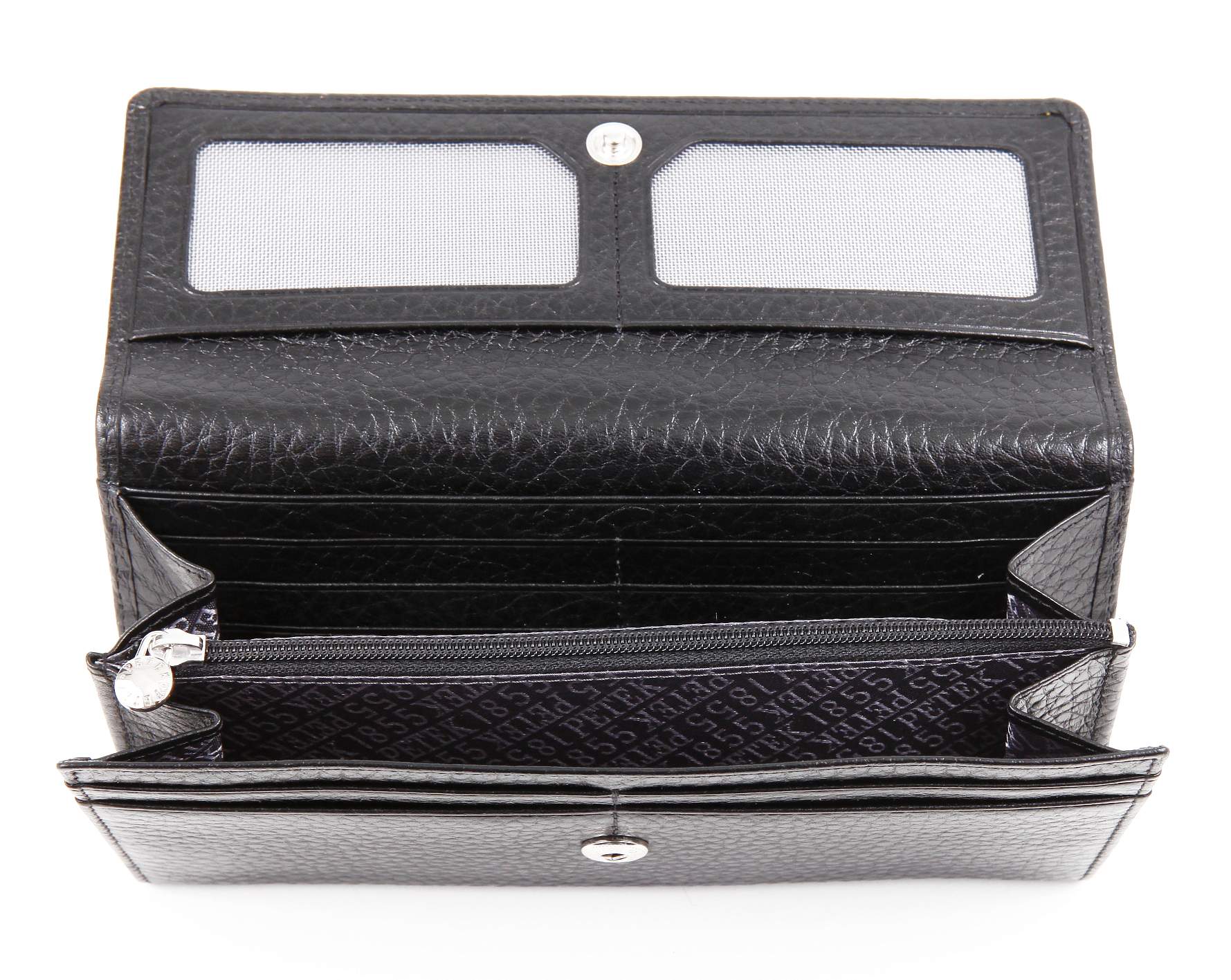 Женский элегантный кошелек Petek из натуральной кожи. 2 отделения для купюр. Продольный карман. Отделение на молнии. 2 окошка-сетки. 10 карманов для карт. Сзади отделение на молнии для мелочи и простой карман.