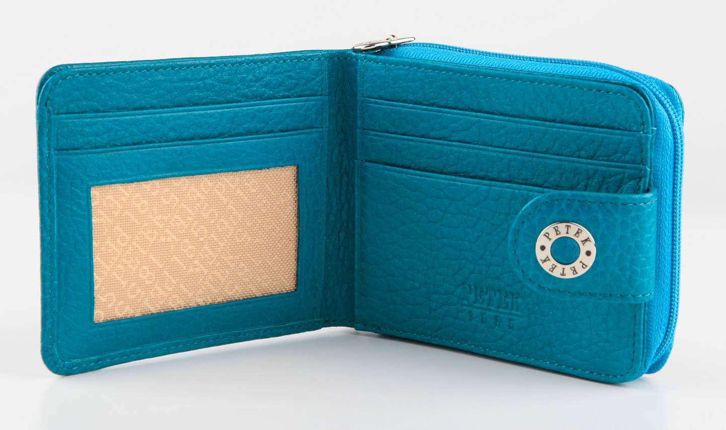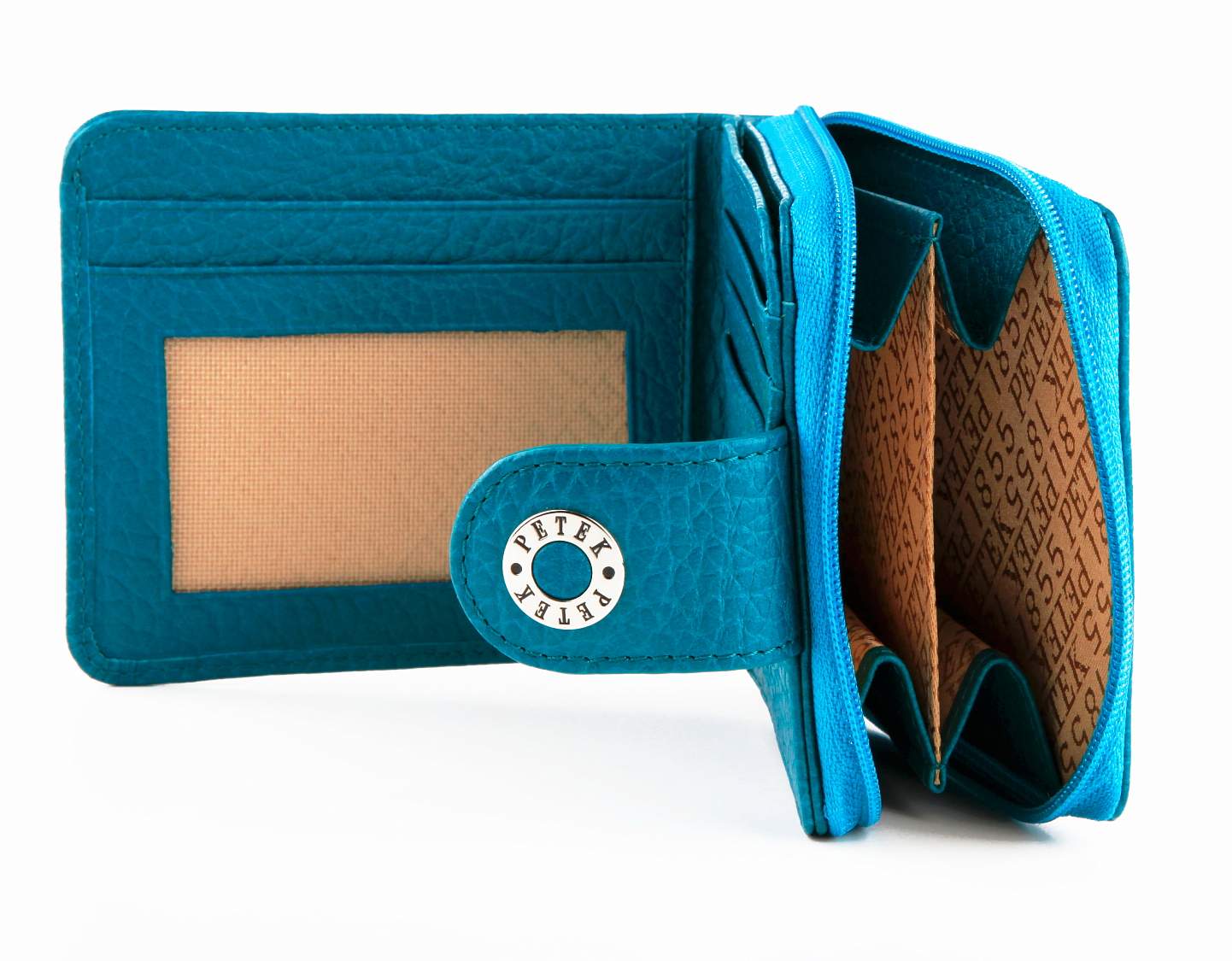 Женское элегантное портмоне Petek из натуральной кожи. 1 отделение для купюр. 5 карманов для кредиток. Отделение для мелочи на молнии (снаружи).