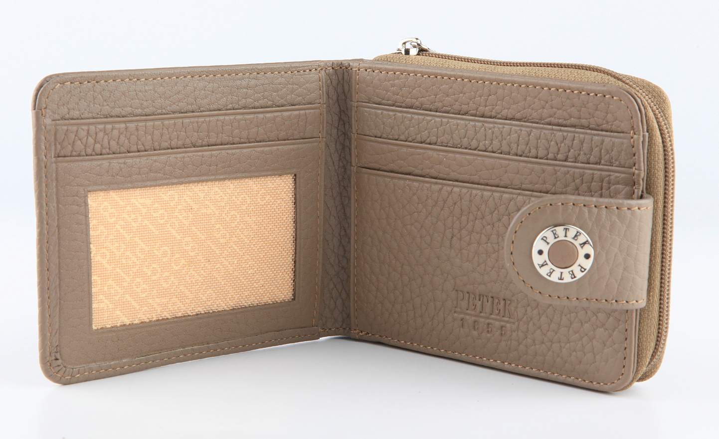 Женское элегантное портмоне Petek из натуральной кожи. 1 отделение для купюр. 5 карманов для кредиток. Отделение для мелочи на молнии (снаружи).