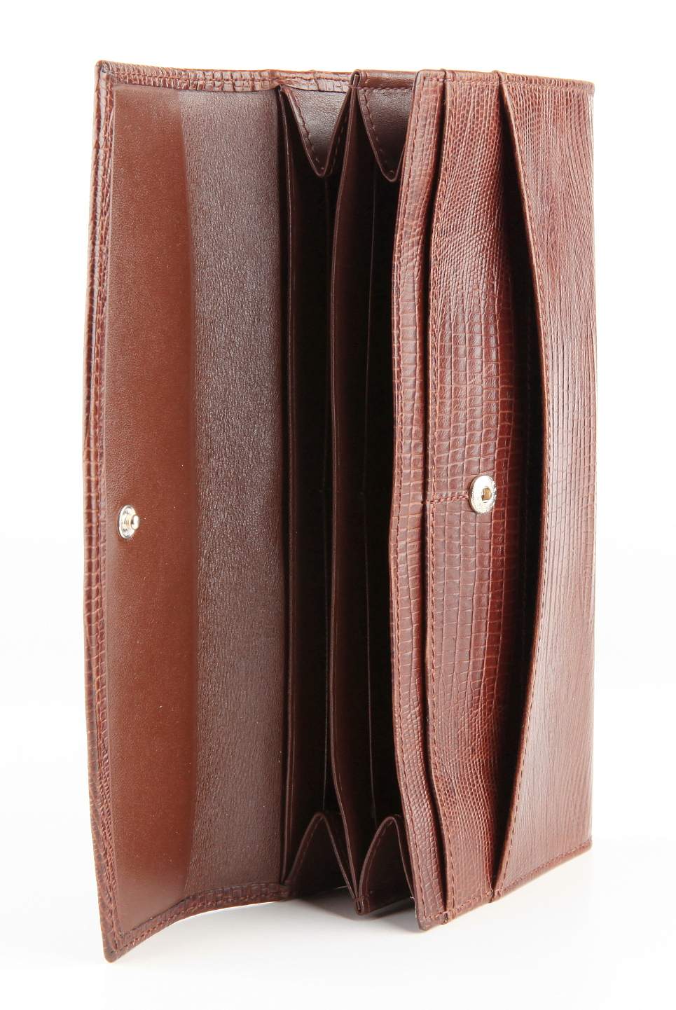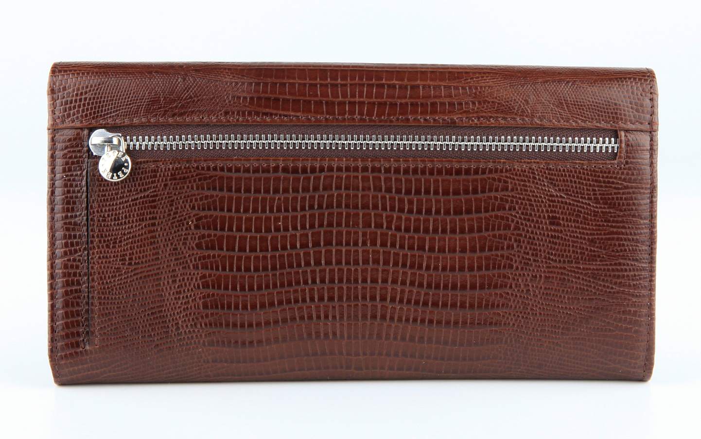 Женское портмоне из натуральной кожи, сочетающее в себе классический стиль и функциональность. Внутри портмоне предусмотрено два отделения купюр любого номинала, двенадцать прорезных карманов для кредитных и дисконтных карточек. На фронтальной части расположены два дополнительных отделения, одно из которых имеет оригинальный, полуовальный контур. В этой модели монетница, закрывающаяся на молнию, вынесена на внешнюю стенку. Портмоне закрывается на кнопку с логотипом Petek.
