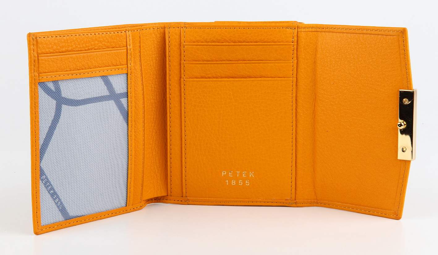 Двухстороннее портмоне Petek1855 с отсеком для монет с одной стороны, с другой стороны портмоне имеет 5 отделений для карточек, 4 дополнительных кармашка и большое отделение для купюр. Так же имеется незаметное легкодоступное при закрытом портмоне отделение между двумя отсеками.
