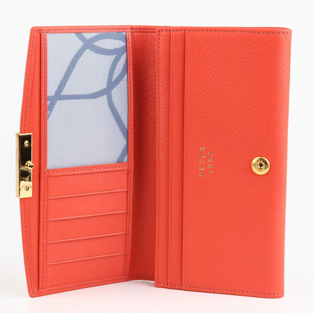 Портмоне женское Petek1855. Внутри одно основное отделение для купюр и два дополнительных. На закрывающем блоке четыре кармана для кредитных и дисконтных карт, потайной карман, а так же отделение с прозрачным окошком, например для фотографии. На оборотной стороне есть два отделения, одно из них на молнии.