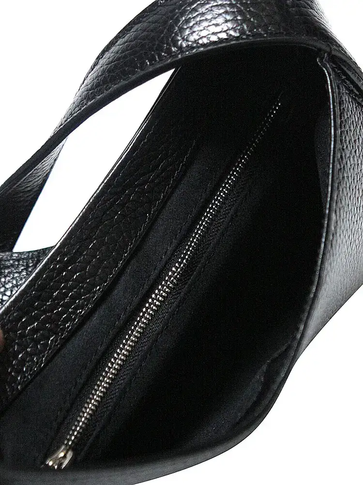 Женская сумка Petek изготовлена из натуральной кожи и закрывается на кнопку. Внутри находится одно большое отделение, а также внутренний боковой карман на молнии для хранения мелких бумаг. Плечевого ремня в комплекте нет. В наборе также фирменный тёмно-красный чехол.