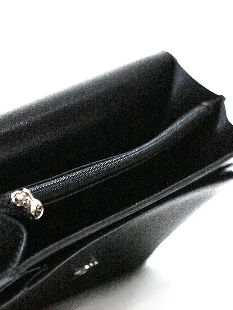 Внутри расположены два основных отделения, разделённых перегородкой, где дополнительное отделение закрывается на молнию.