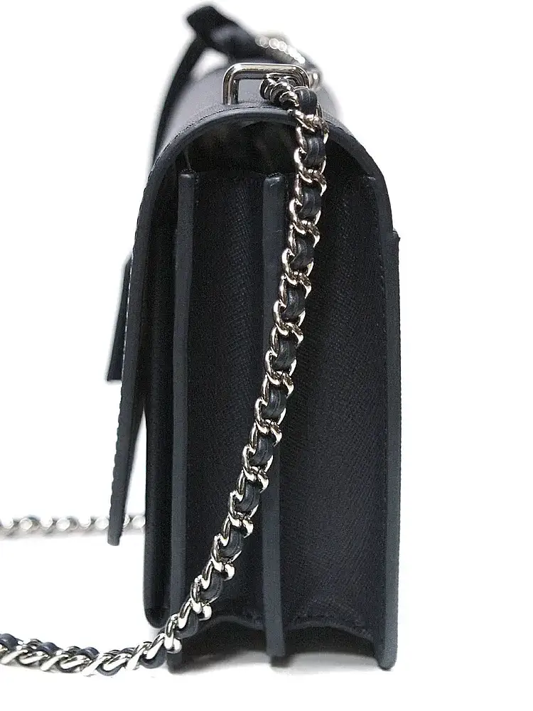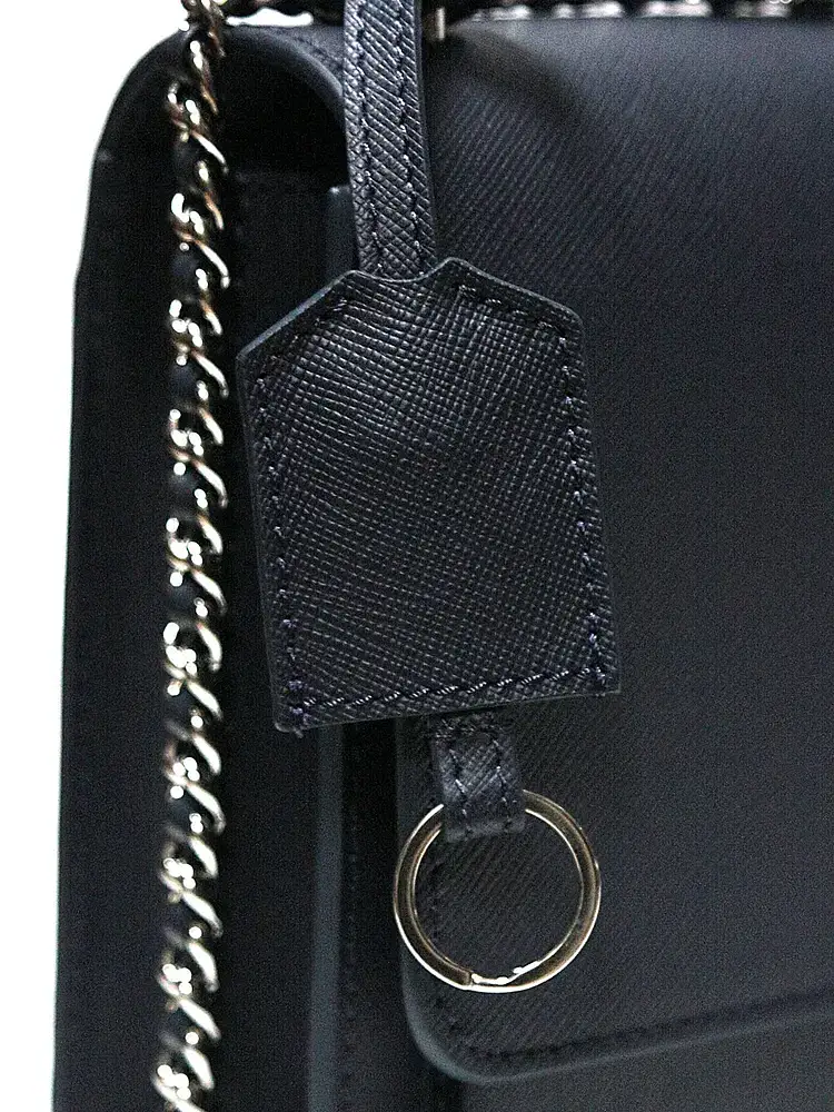 Изделие оснащено несъёмным ремнём, изготовленным из цепочки с продетой кожей. Расстояние от середины ремня до сумки составляет 50 сантиметров.