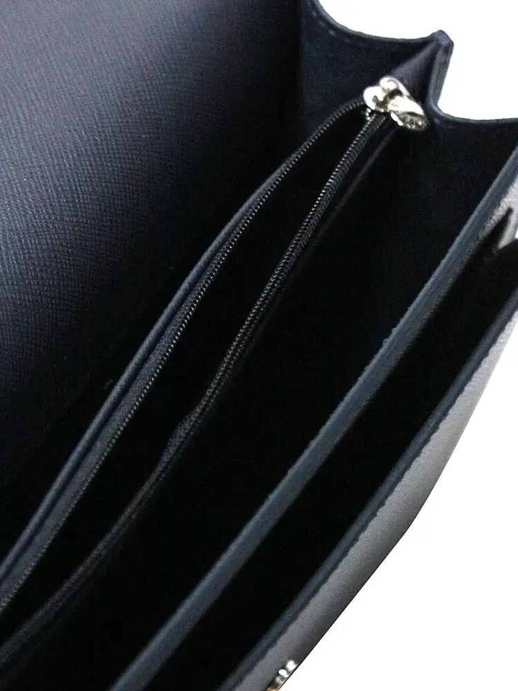 Внутри расположены два основных отделения, разделённых перегородкой, где дополнительное отделение закрывается на молнию.
