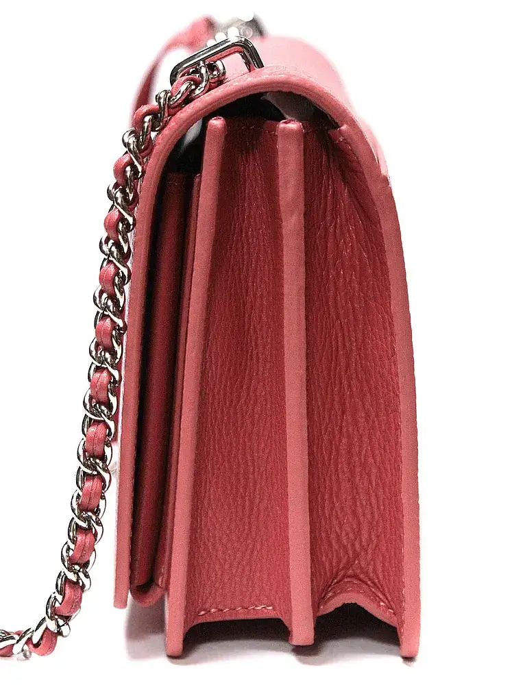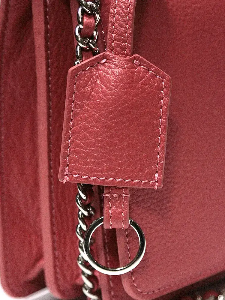 Изделие оснащено несъёмным ремнём, изготовленным из цепочки с продетой кожей. Расстояние от середины ремня до сумки составляет 50 сантиметров.